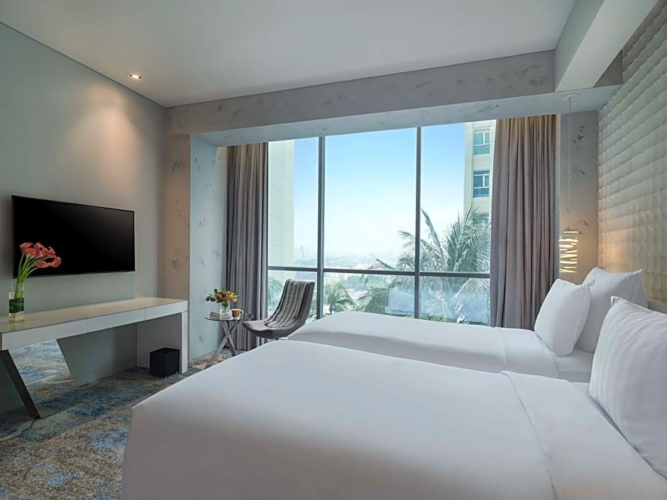 Located on a higher floor, rooms feature a 42-inch LCD TV, free local calls and newspapers, a lounge area and ample work space. It also comes with floor-to-ceiling windows that provide views and much natural light. Private bathroom has a bathtub and rain shower facilities.